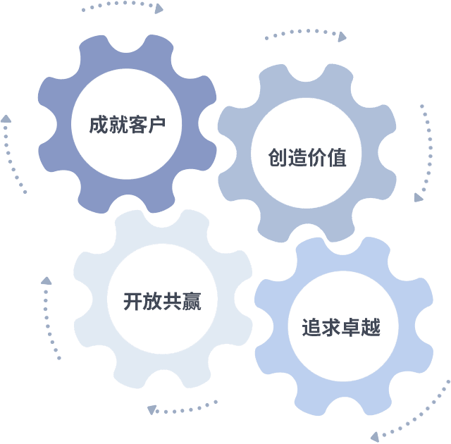 成就客户是一切决策的出发点,,,,创造价值是衡量所有工作的标准,,,追求卓越是U乐国际做事做人的态度,,,,开放共赢是U乐国际的格局也是最终的结果。。。。价值观的齿轮环环相扣,,推动着组织里的每个人不断向前。。